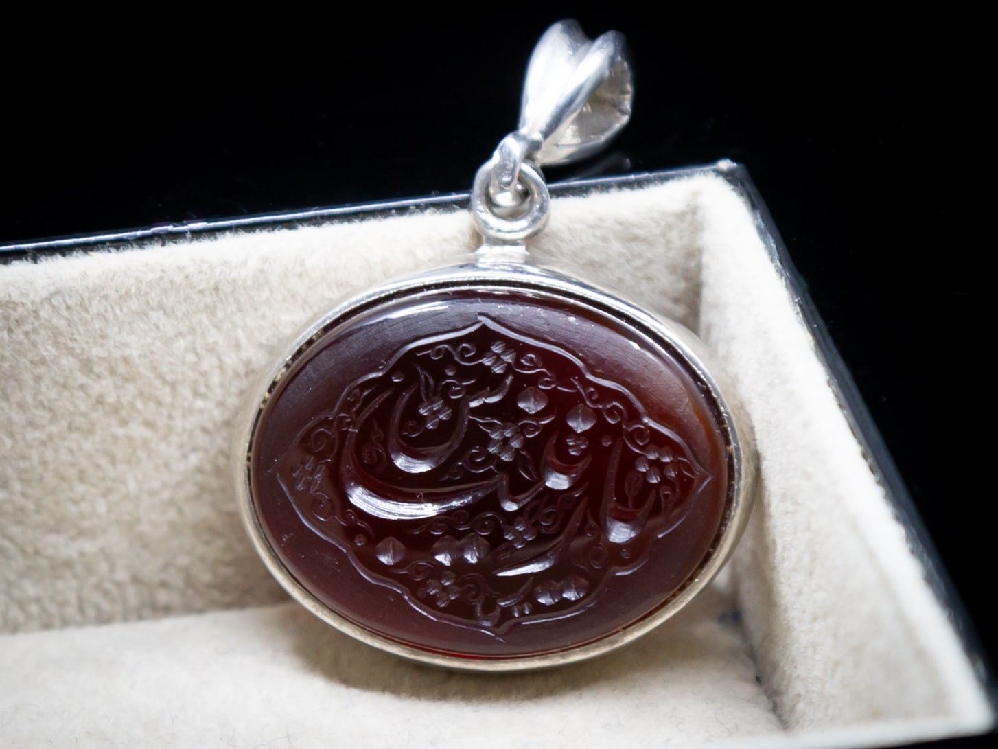 قلادة عقيق يمني بنقش